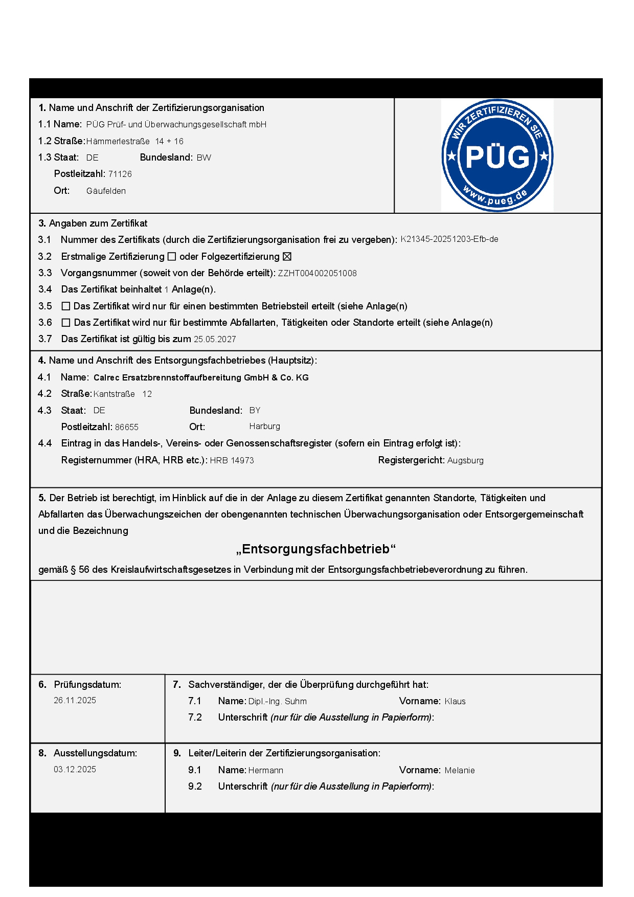 CALREC Ersatzbrennstoffaufbereitung GmbH & Co. KG